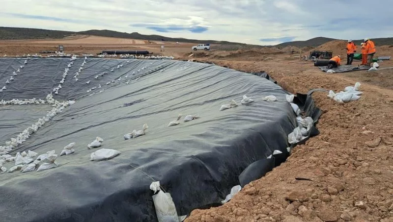 La instalación de la geomembrana en la pileta de aguas frescas antecede la colocación del pad de lixiviación y representa un paso esencial hacia la futura producción. Esta etapa demandará entre 40 y 60 días de tareas continuas, con personal especializado y controles de calidad en cada fase.
